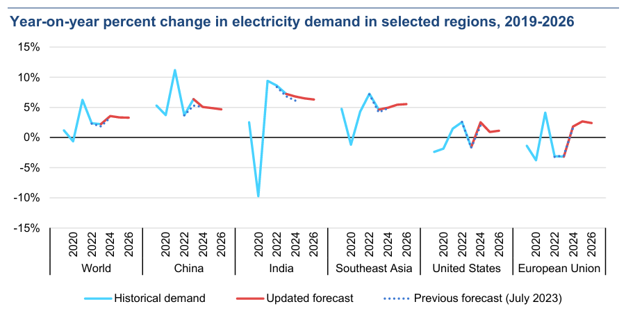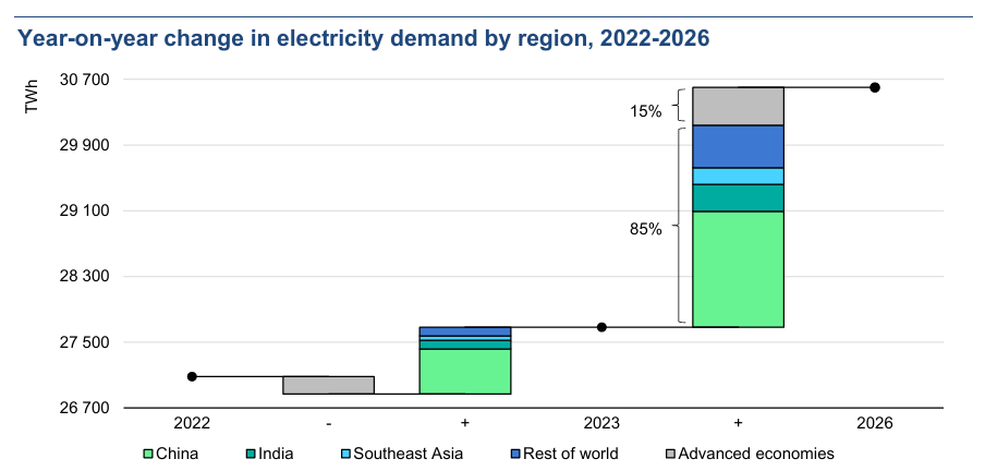 Emerging economies: Growth engines: Emerging markets, particularly in Asia, are the engines of global electricity demand. China and India stand out as leaders.