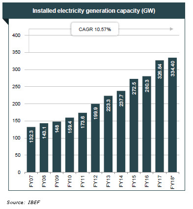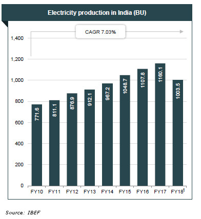 A February 2018 report by India Brand Equity Foundation (IBEF), a commerce ministry arm, said that over FY 2010–FY 2017, electricity production in India grew at a CAGR of 7.03%.