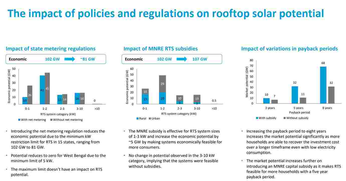 A study conducted by CEEW (Council on Energy, Environment and Water) indicates that there is a capacity of installing 637 GW of Solar Photovoltaic (PV) on the roofs of buildings. Tapping one-third of this potential could meet the total electricity demand of the Indian residential sector which is almost equal to 310 TWh.