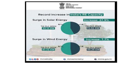 Solar power: India’s rising star – Solar energy leads the charge in India’s renewable energy sector, thanks to its abundant sunshine and government initiatives like the Solar Parks Development Scheme. As of 2024, India has achieved a solar power capacity of 81.8 GW, accounting for over 40% of the country’s renewable energy capacity additions. Policies such as inter-state transmission charge waivers and rooftop solar incentives have further catalyzed growth.India